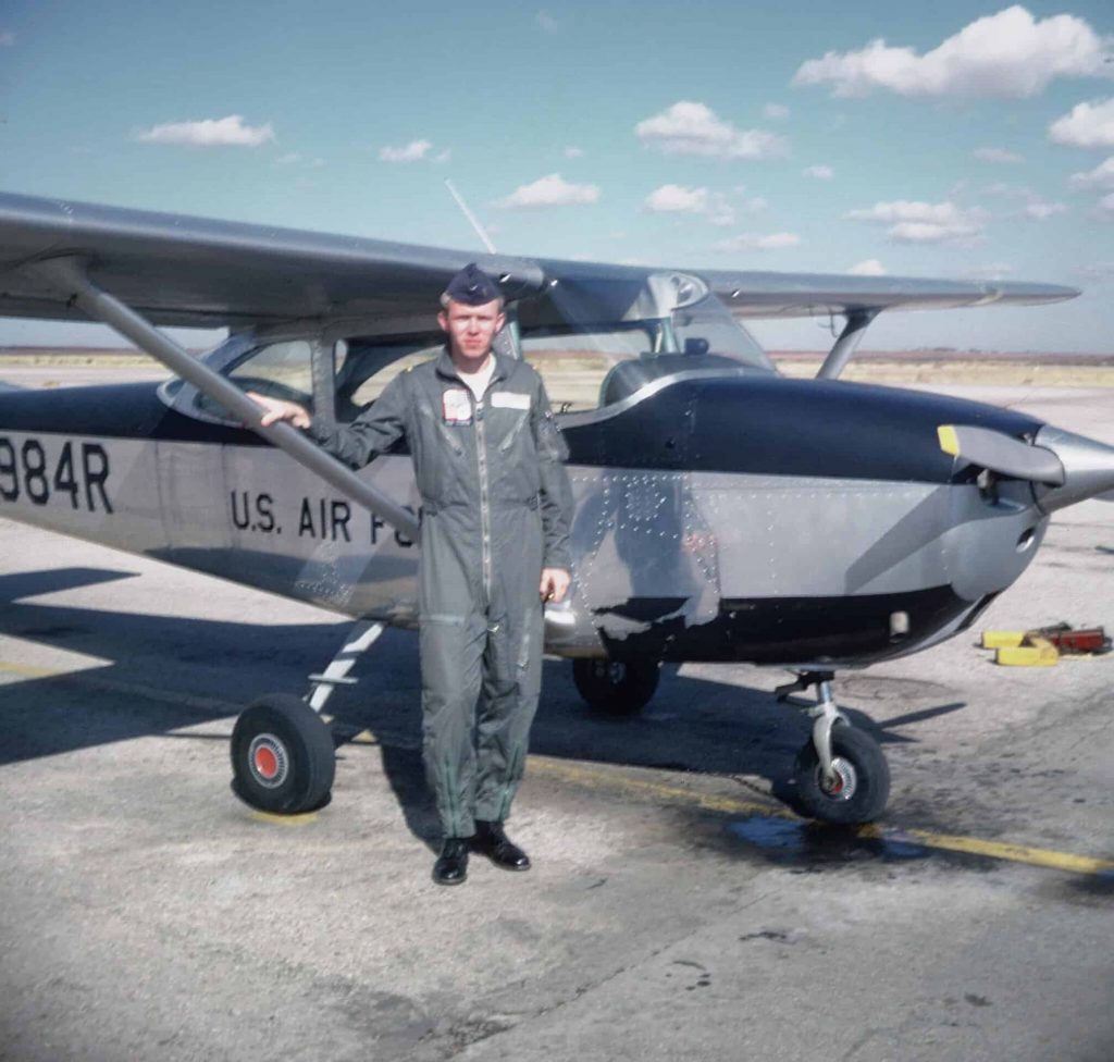 Byron Hukee am Anfang seiner Ausbildung neben einer Cessna Mescalero.